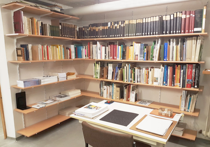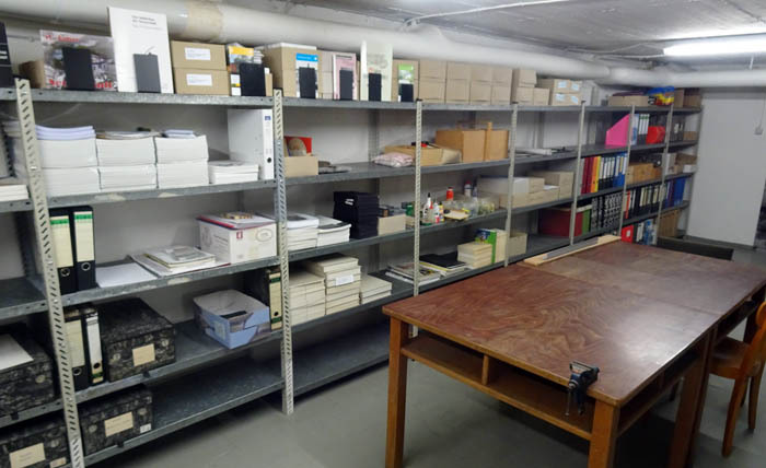 - Raum 2: Der Haupt-Archivraum mit Regalen für Schriftgut, Bücher und der Foto- und Dia-Sammlung
