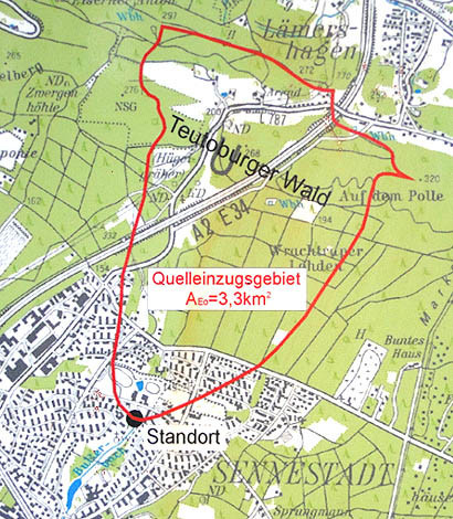 Der Bullerbach ist der Quellfluss der Dalke, die nach 28 km hinter Gütersloh in die Ems mündet.